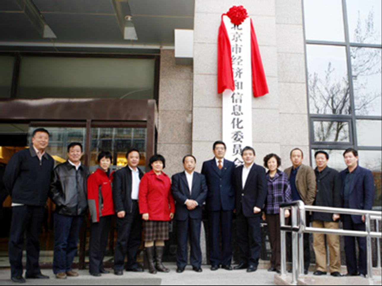 2009年3月30日下午17时40分,工体北路凯富大厦门前,北京市经济和信息化委员会举行挂牌仪式。 市政府副秘书长鲁勇、新任市经济和信息化委员会书记李平一起拉下红绸,“北京市经济和信息化委员会”正式诞生。新任市经济和信息化委员会主任朱炎等领导一同出席挂牌仪式。