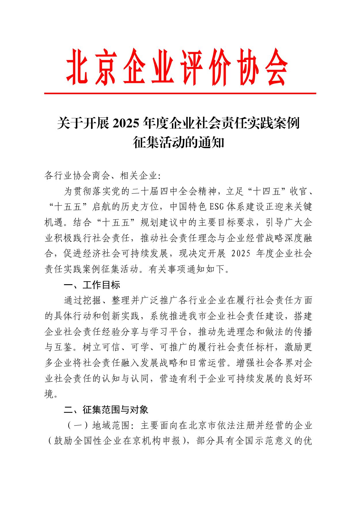 关于开展2025年度企业社会责任实践案例征集活动的通知
