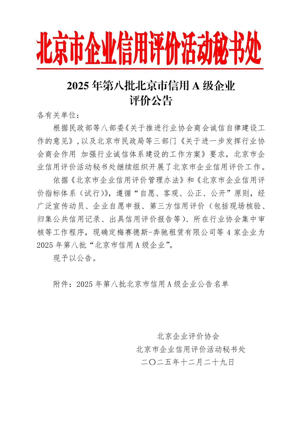 关于发布2025年北京市信用承诺企业名单(第四批)的公告