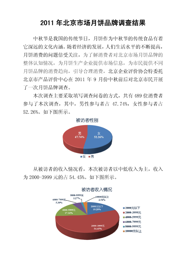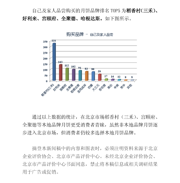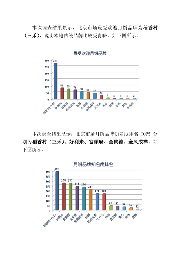 2011年北京市场月饼品牌调查结果